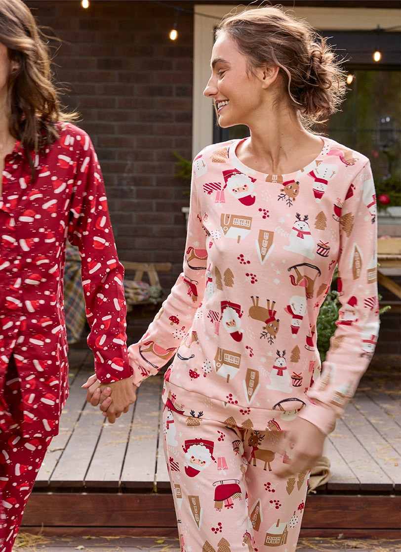Višina modela je 175 cm. Model nosi številko 38. Rožnata ženska pižama z dolgimi rokavi in božičnimi motivi je del novoletne kolekcije. V celoti je sešita iz bombaža, zaradi česar je nežna in prijetna za nošenje. Zaradi zanimivega dizajna in naravnega materiala je idealna izbira za vse ljubitelje udobnih pižam.